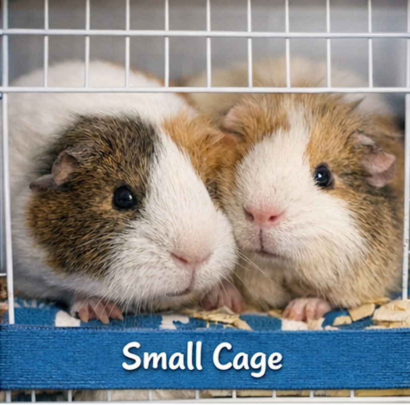 Small cages = unhappy guinea pigs.